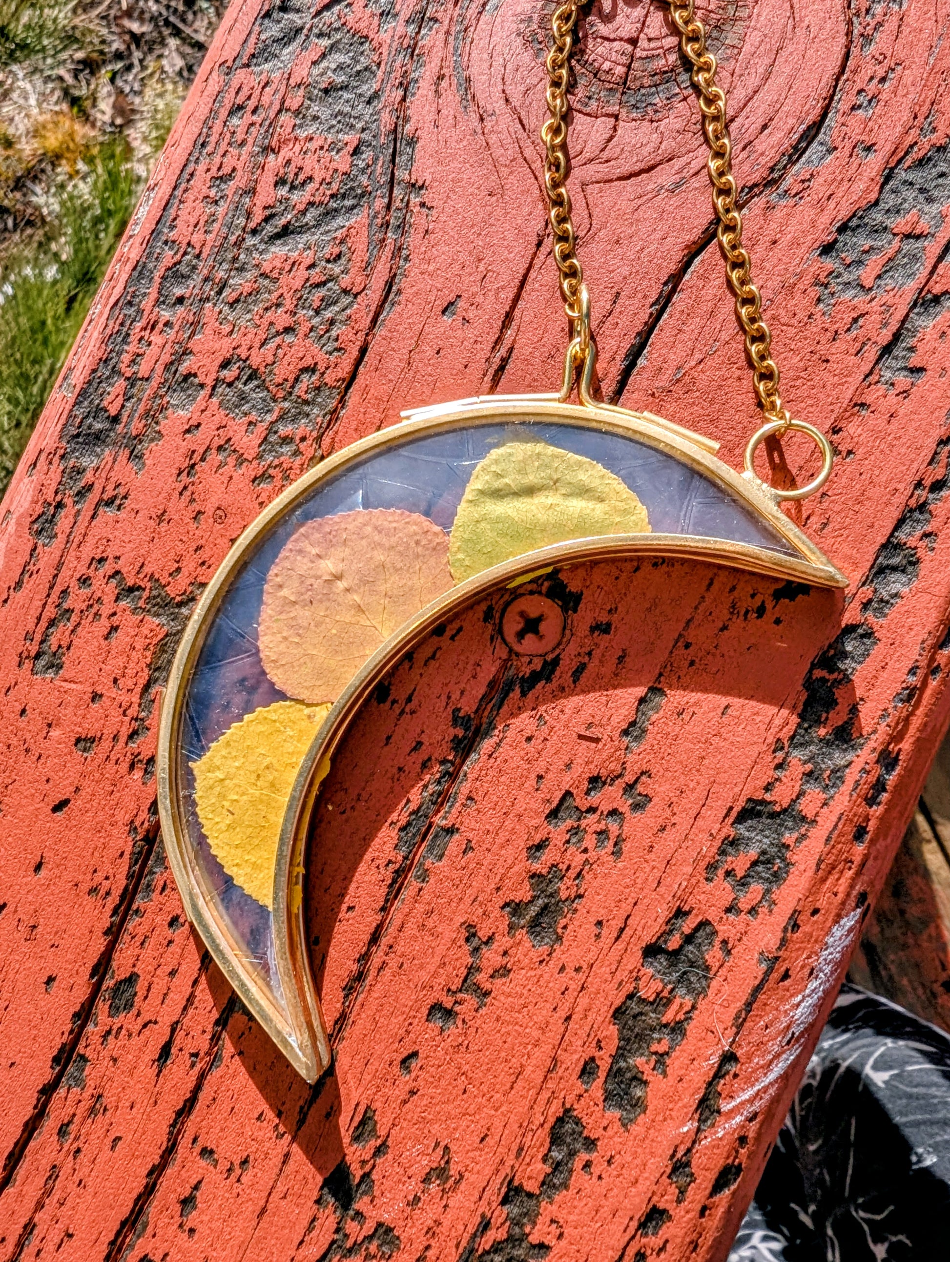 This piece features real pressed Aspen leaves!