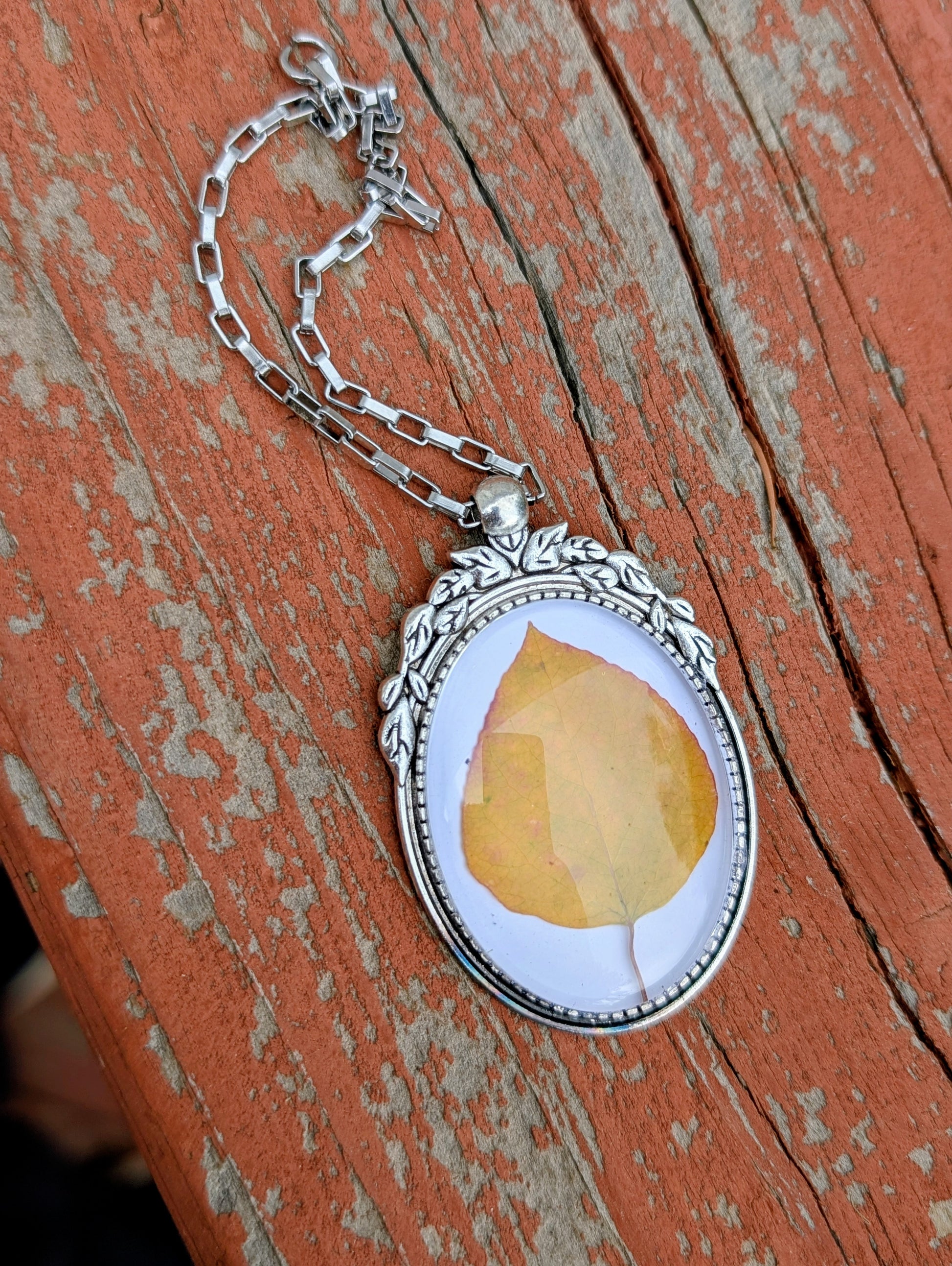 The leaves are chosen for their uniqueness and color, and are perfectly imperfect. The colors range from bright Yellow, to orange, and hints of green and red.