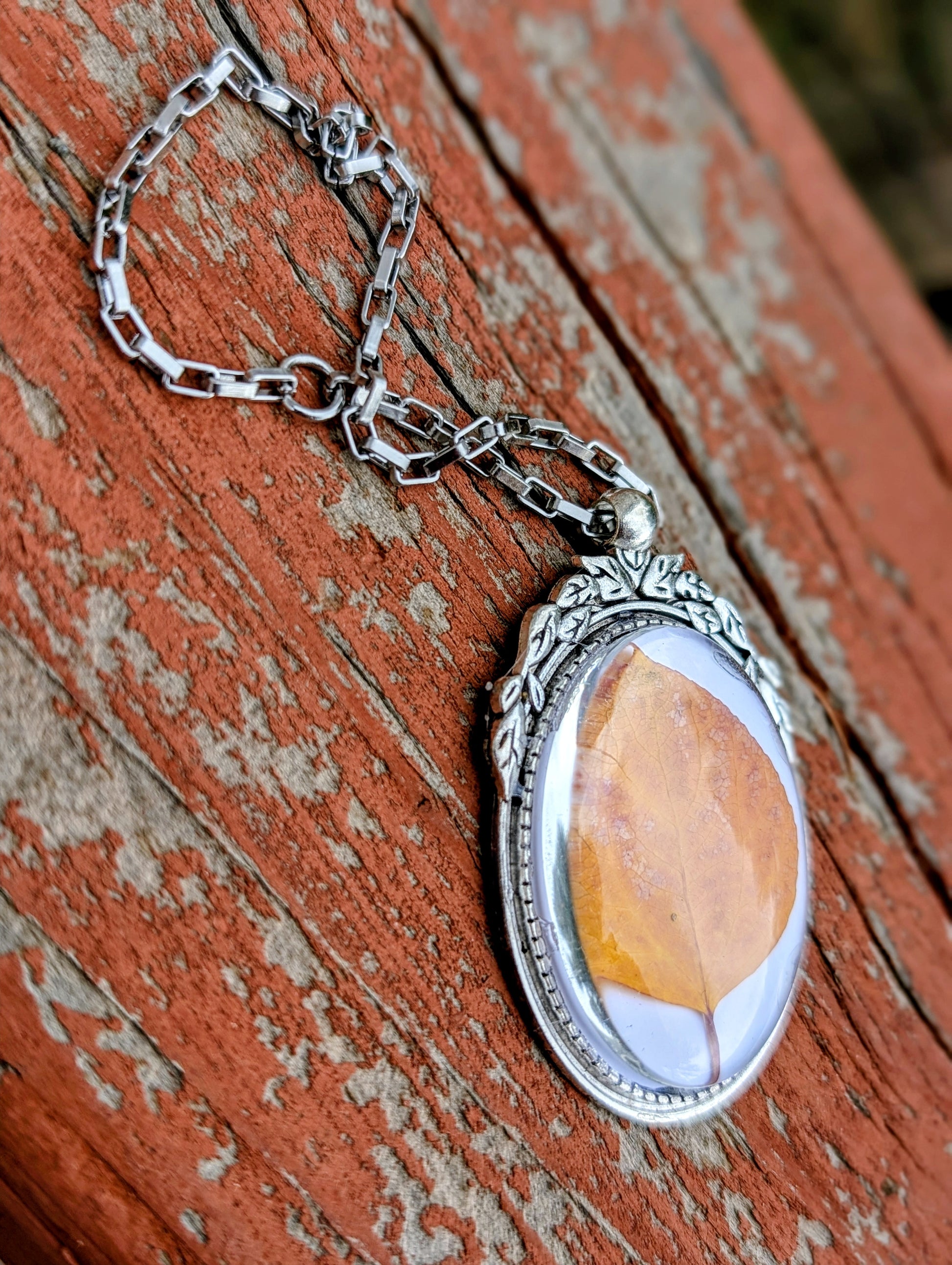 Created with a glass cabochon and metal hardware, and finished with a stainless steel chain, these pieces are durable and made to last!
