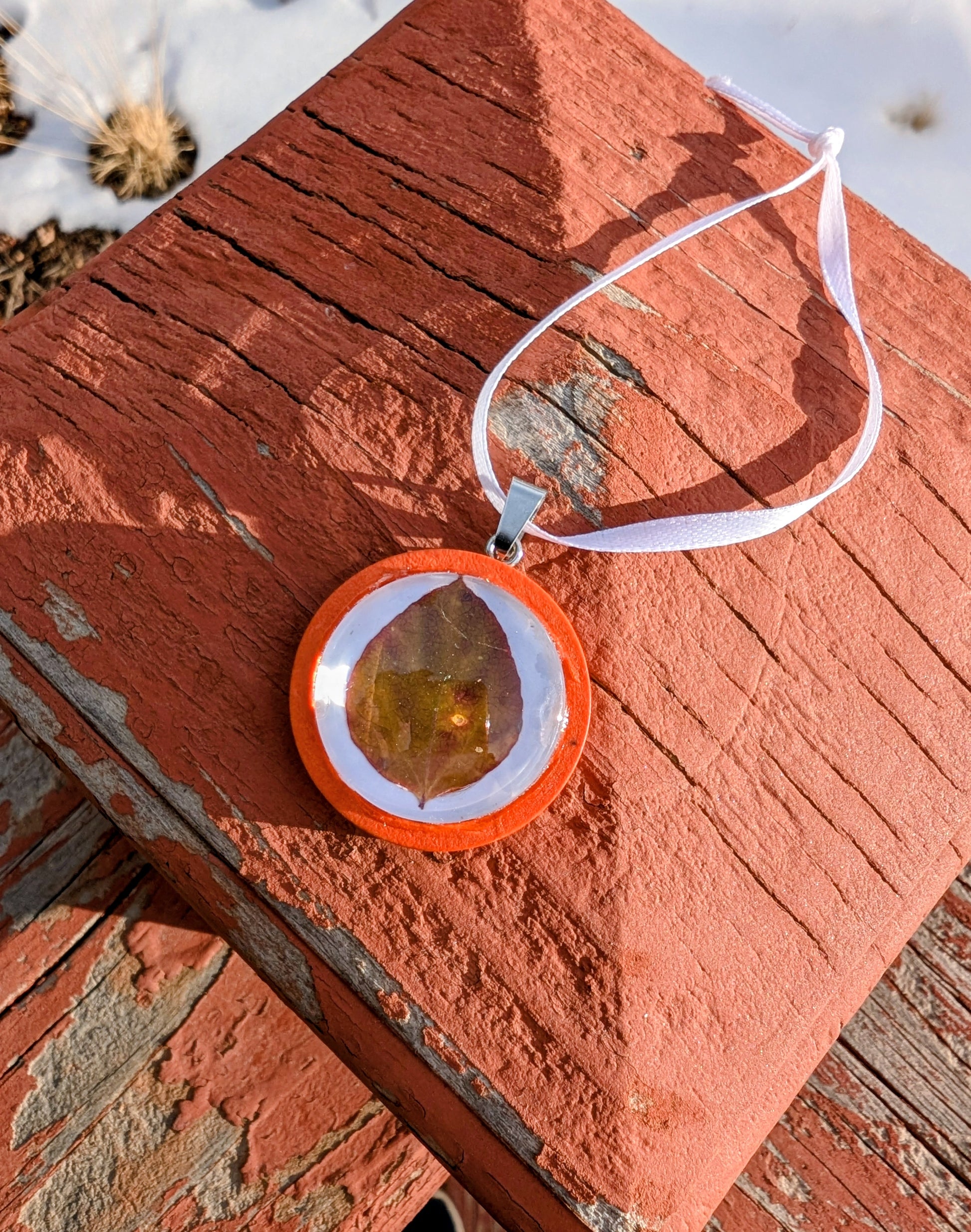 Created with a glass cabochon and stained wood back, and finished with a satin ribbon, these pieces are durable and made to last!